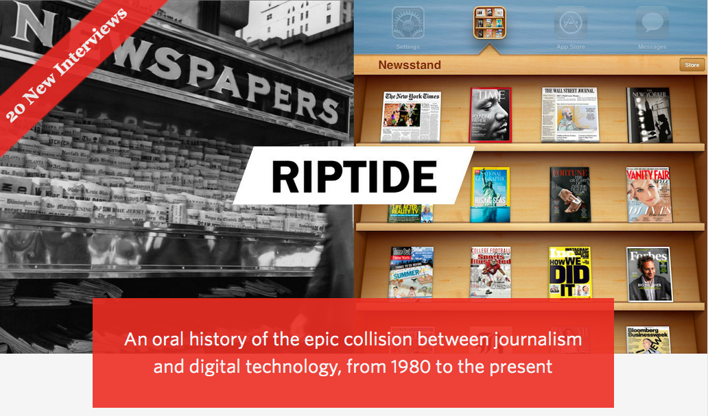 But Riptide is not a static report, it is an ongoing project based on the website www.digitalriptide.org. The website is an amazing repository of information, including videos and transcripts of interviews done for the project and documents such as internal memos about the digital transition written by industry leaders.